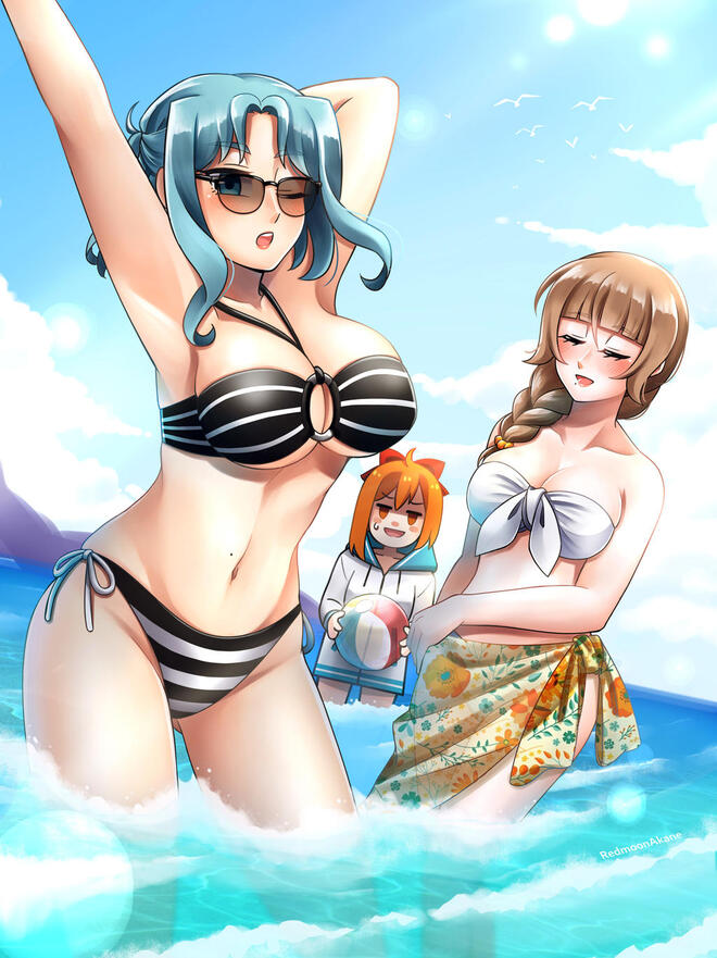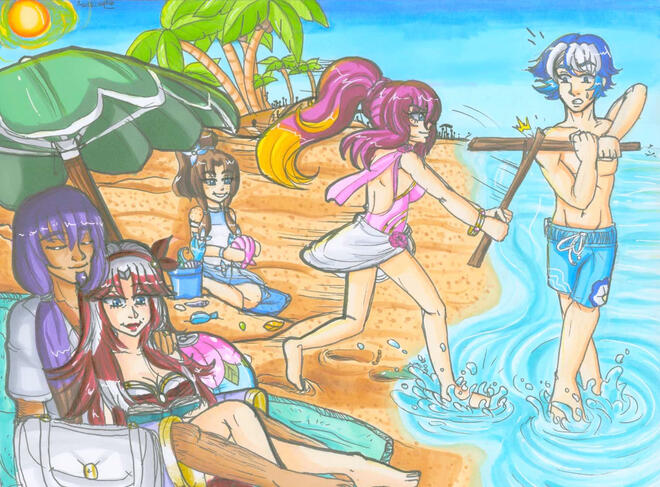 Original Characters deserve to be a part of the fun so why not have them join the beach!This month's theme is based on the Anime trope where characters are taken to a summer-themed area and outfitted with swimwear and interesting camera angles.